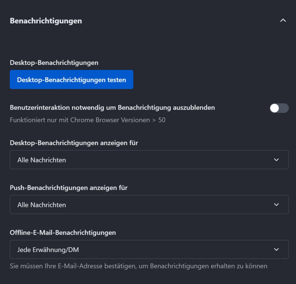 5. Klicke bei E-Mail Benachrichtigungen auf Deaktiviert