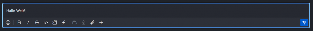 2. Verfasse im Eingabefeld deine erste Nachricht. Versende Sie über den Blauen Pfeil unten rechts. Alternativ „Enter“-Taste.